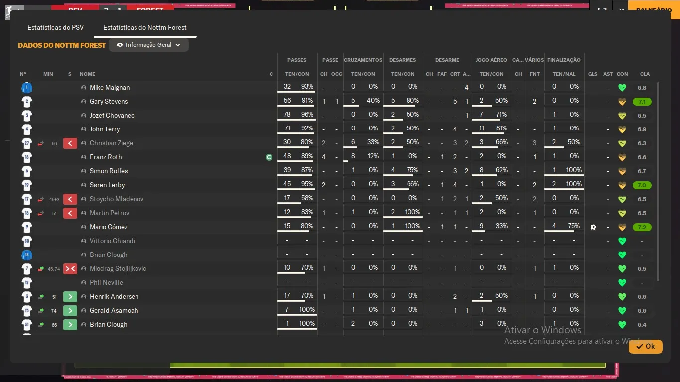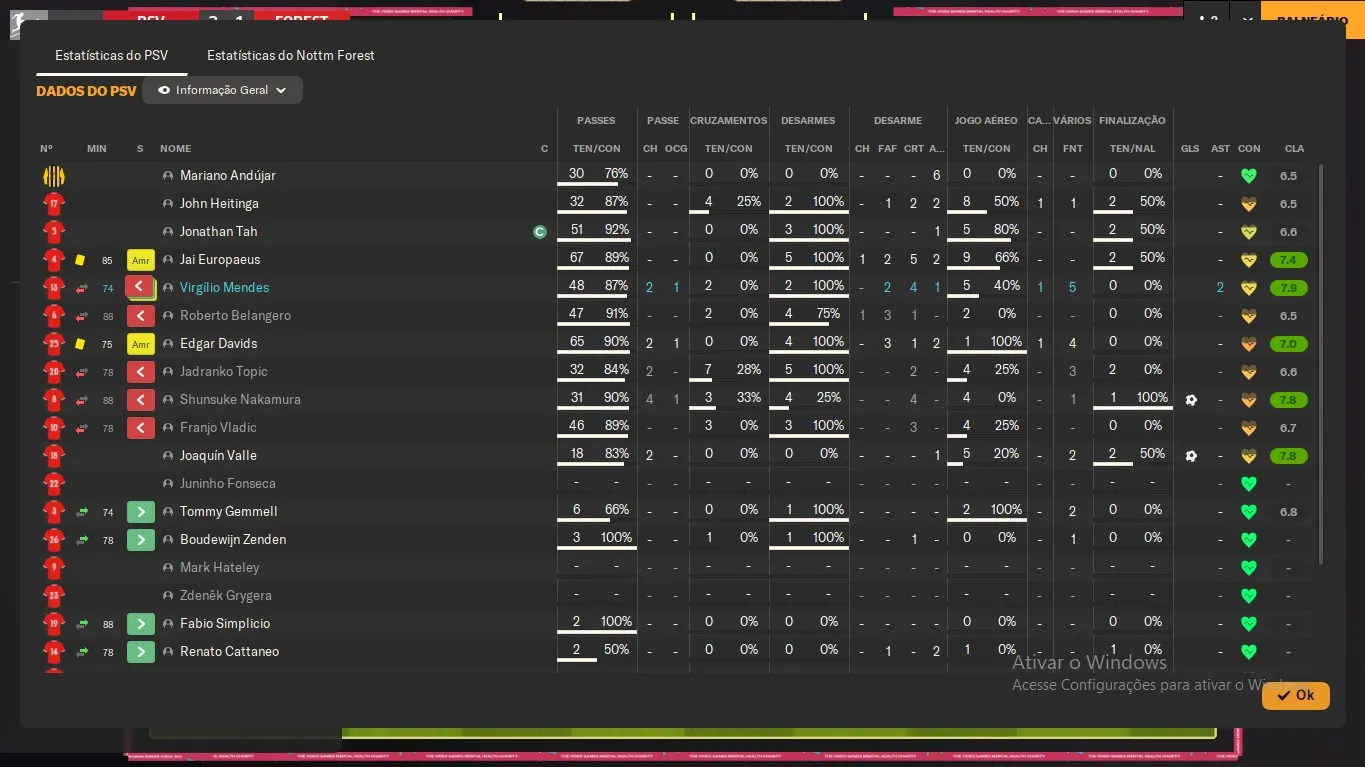 | Name | Jogos | Mins | Gols | Ass | Sofr | C.A. | C.V. | MeC | Class |