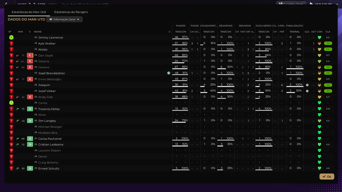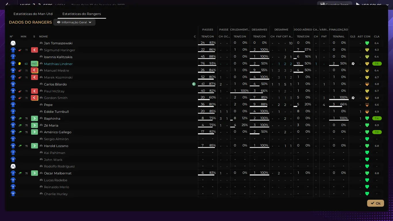 | Name | Jogos | Mins | Gols | Ass | Sofr | C.A. | C.V. | MeC | Class |