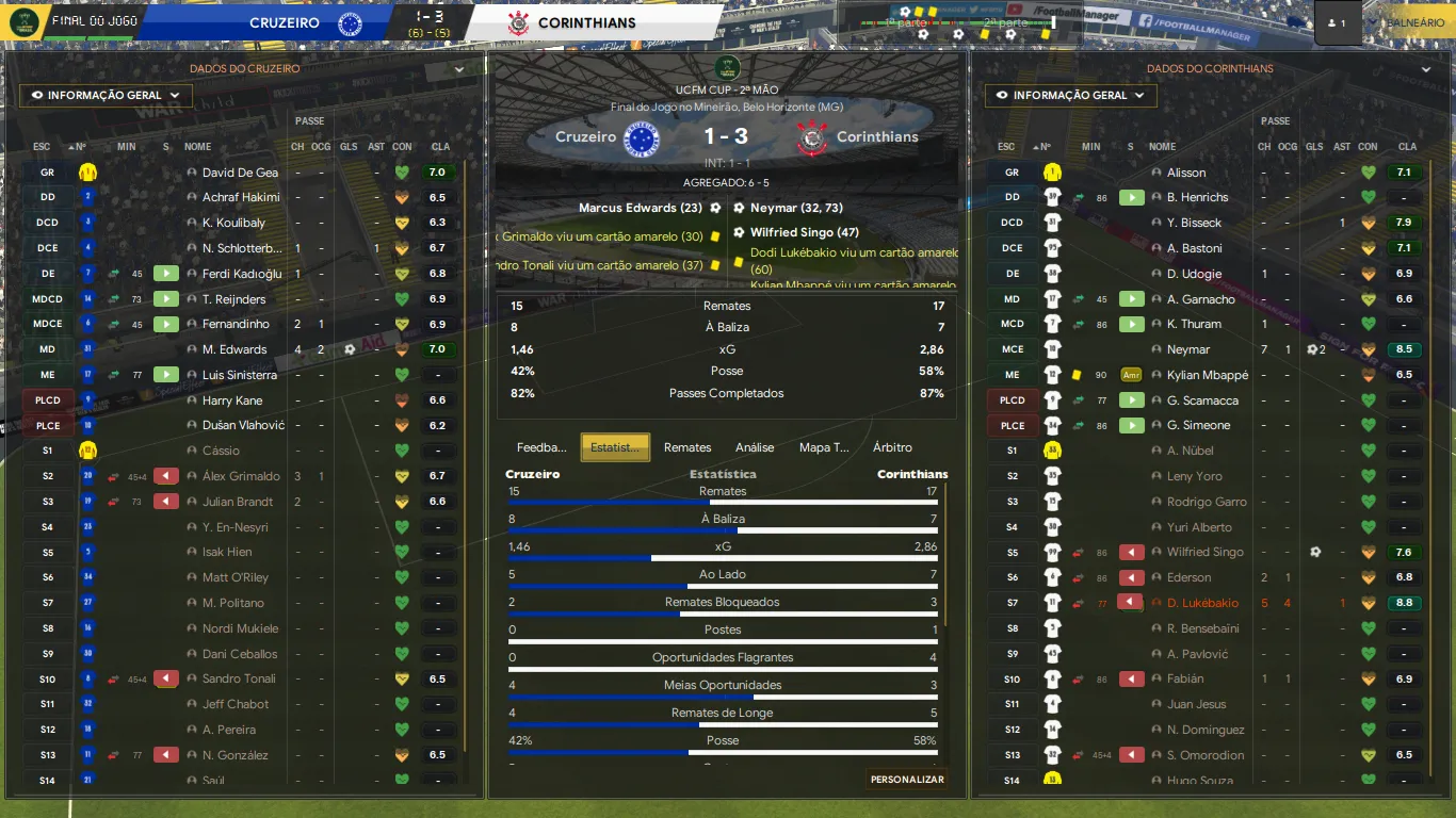 | Name | Jogos | Mins | Gols | Ass | Sofr | C.A. | C.V. | MeC | Class |