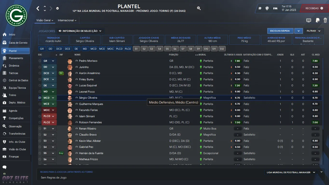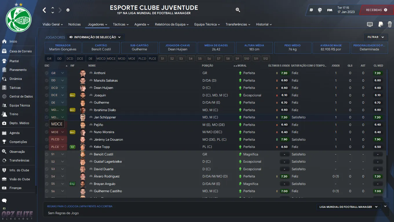 | Name | Jogos | Mins | Gols | Ass | Sofr | C.A. | C.V. | MeC | Class |
