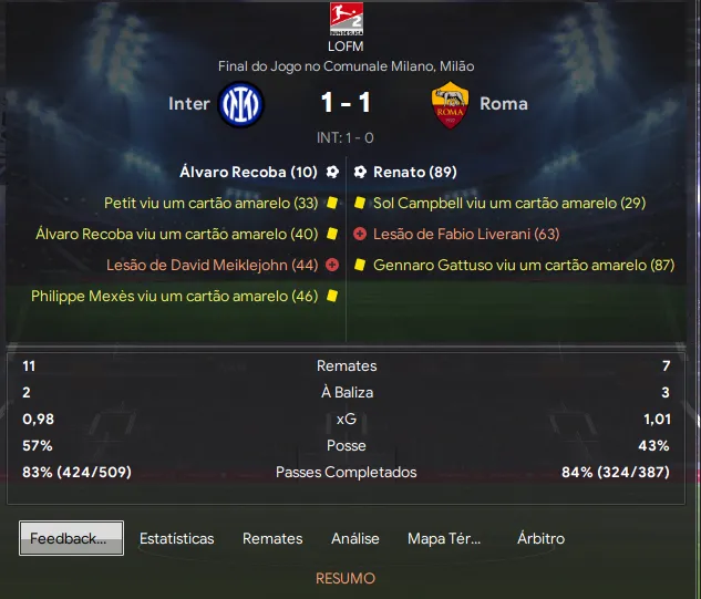 | Name | Jogos | Mins | Gols | Ass | Sofr | C.A. | C.V. | MeC | Class |