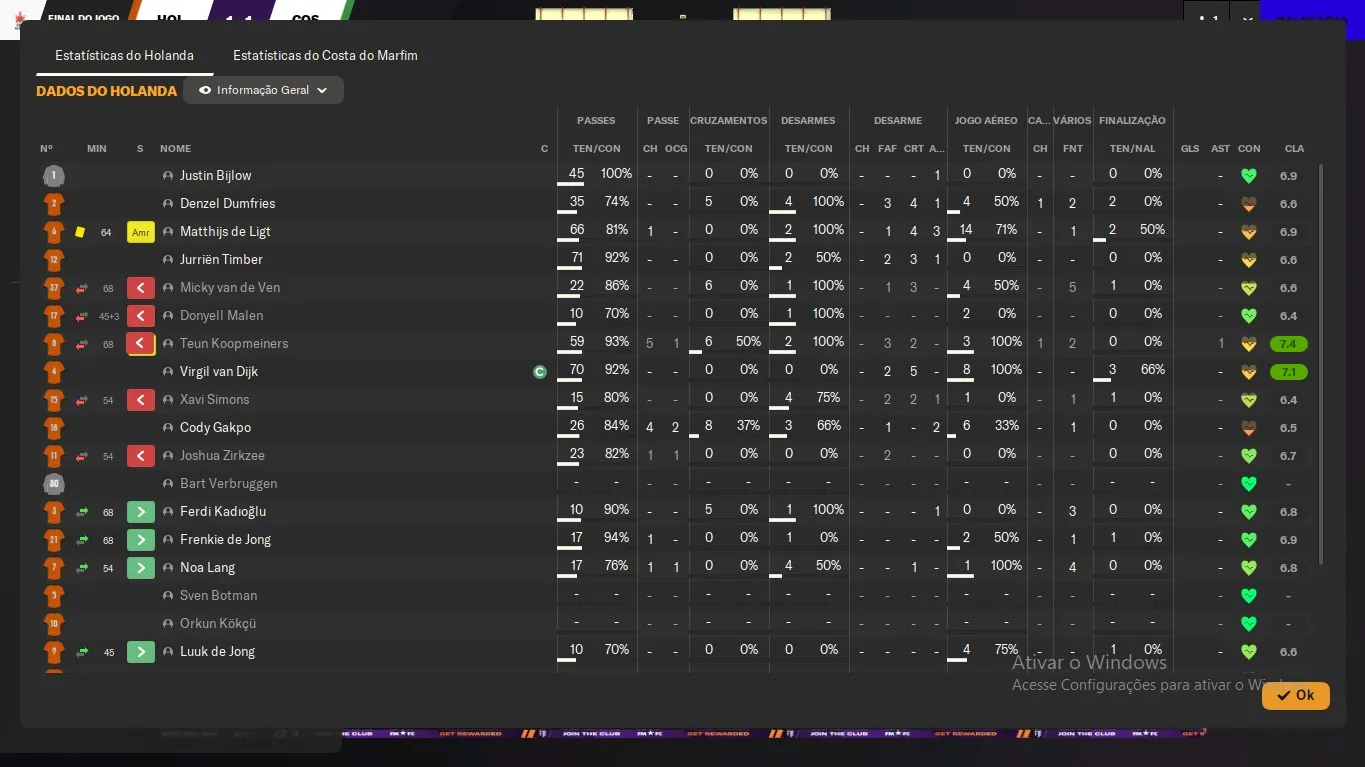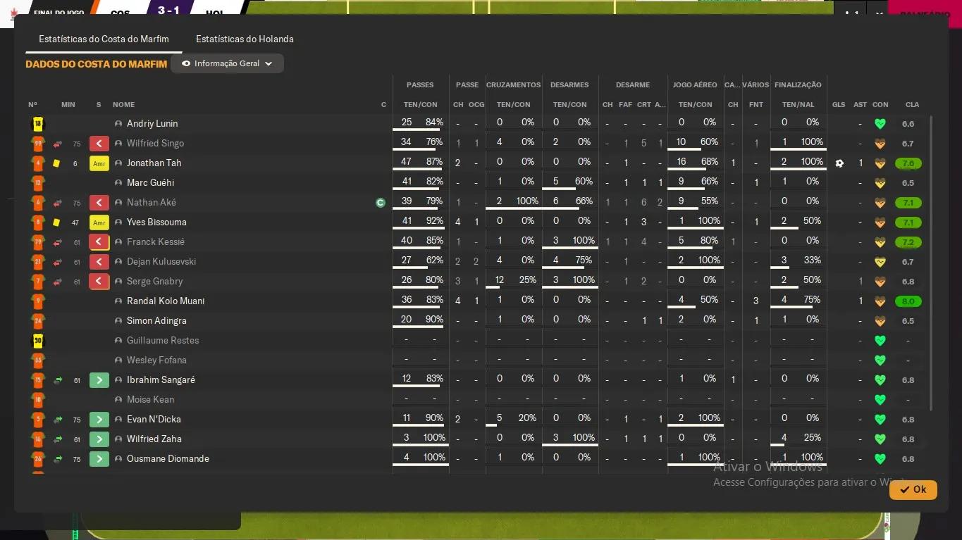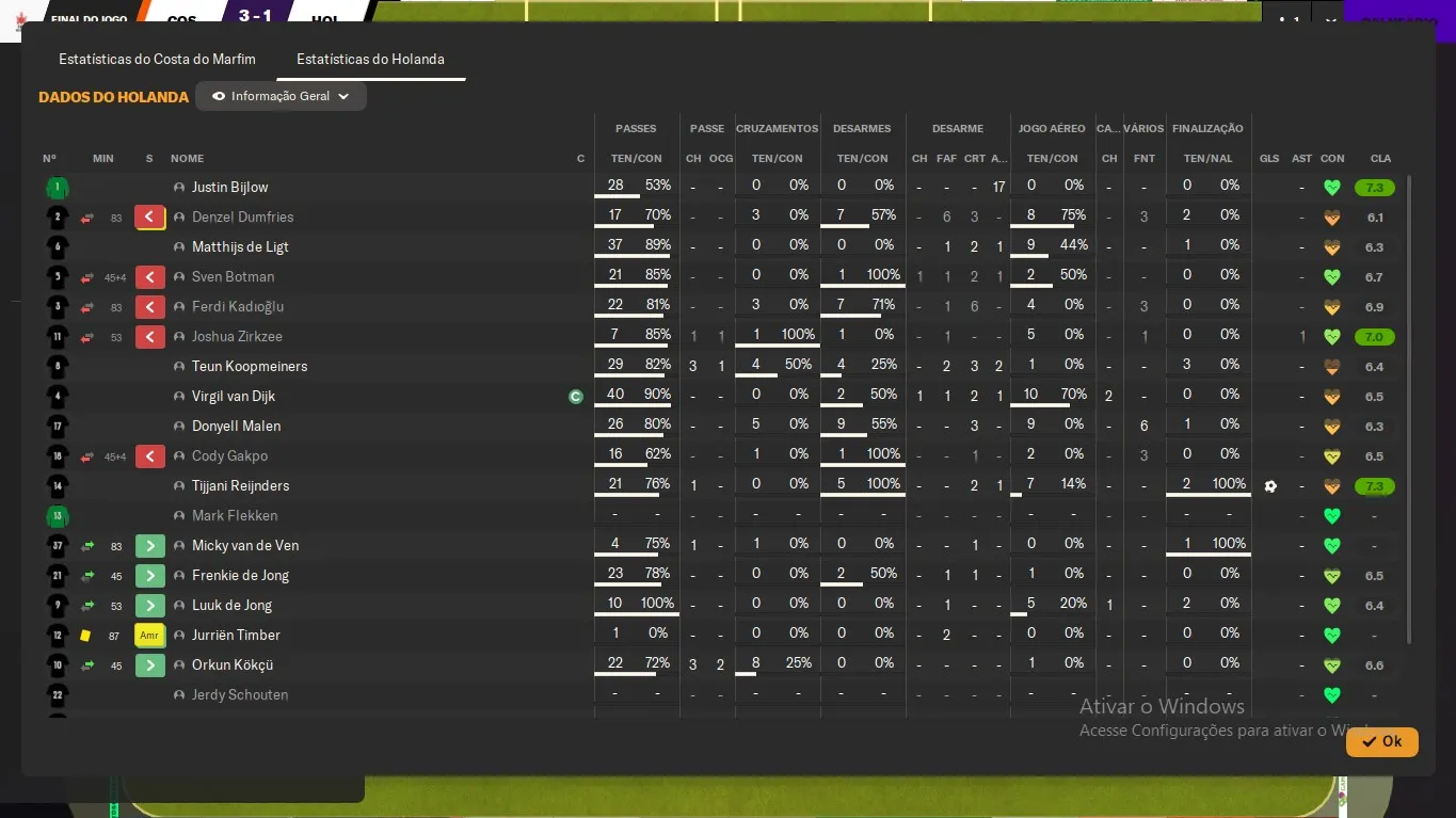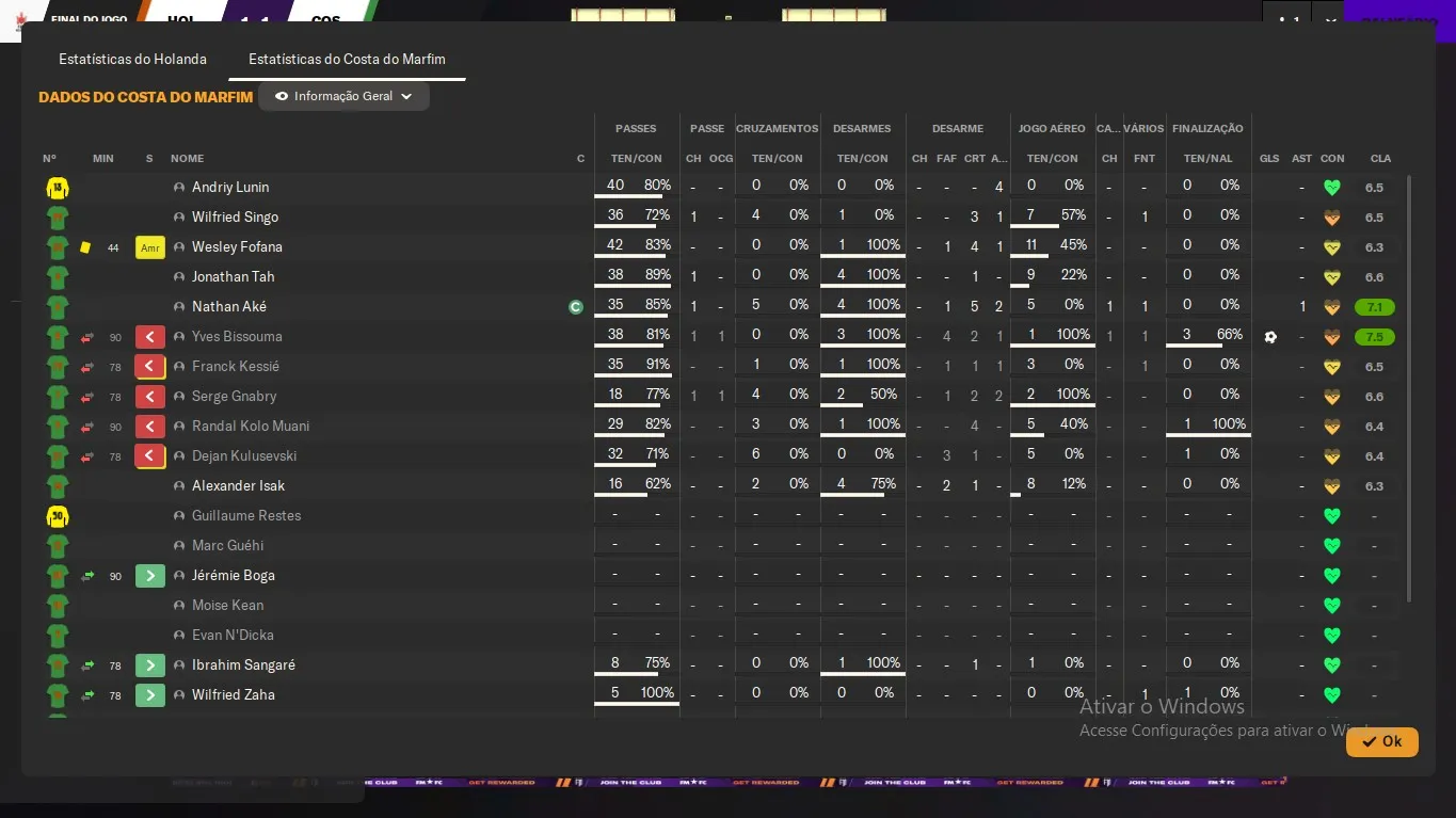 | Name | Jogos | Mins | Gols | Ass | Sofr | C.A. | C.V. | MeC | Class |